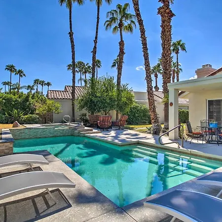 Die Desert Retreat - Walk To Indian Wells Tennis ist umgeben von den Palmen und verfügt über einen Swimmingpool sowie einen Jacuzzi. Diese Villa verfügt über Parkplätze und eine sonnige Terrasse mit Aussicht auf den Garten.